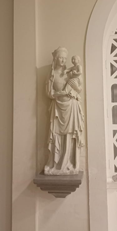 Une réplique en fonte creuse d'une vierge à l'enfant y reposera. La vierge qui a servit de modèle date du XIVe s et reposait à l'angle de la rue de la convention à coté du square Castan. Déplacée en 2012 à la Cathédrale Saint Jean de Besançon, une autre réplique occupe actuellement sa place d'origine.
